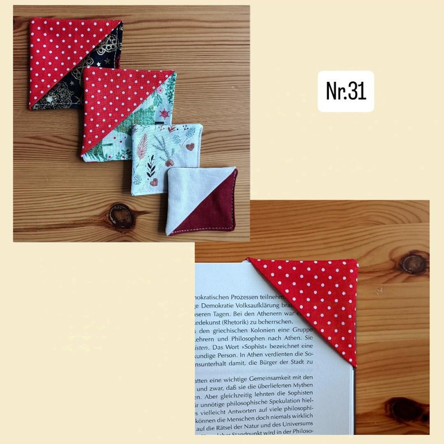 4er Set Lesezeichenecken (2 Stück 5×5cm, 2 Stück 7×7cm), weihnachtlich
