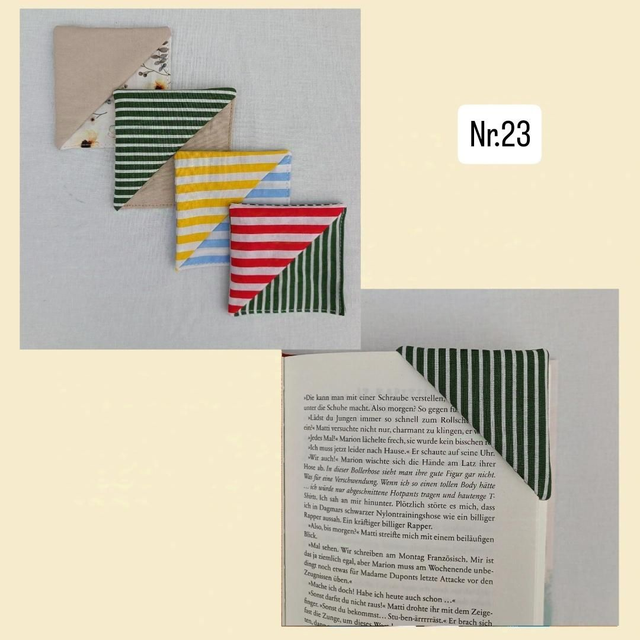 Da man, wenn man näht, immer Stoffreste zuhause hat, habe ich sie mir geschnappt und daraus Lesezeichenecken genäht. So gibt es weniger Müll und du hast auch immer ein kleines Mitbringsel und kannst jemandem eine Freude machen.