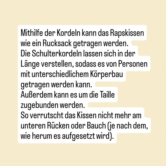 Du möchtest deinen Nacken, Rücken oder Füße aufwärmen und eine leichtere Füllung testen? Dann nutze dieses Rapskissen.