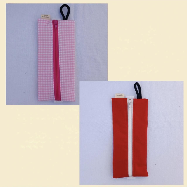 Stiftemäppchen/Etui mit Reißverschluss, 8×19cm, Gummiband zum Befestigen an z.B. Kalender, Schlaufe zum Aufhängen, schlichtere und weitere Designs
